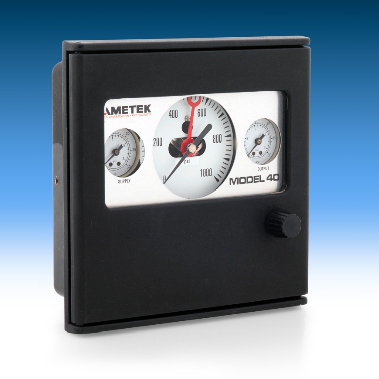 AMETEK-PMT Model 40 Pneumatic Pressure Controllers automatically position a valve or other final control element to maintain process pressure at the desired set point. The Model 40 Pneumatic Controller is trusted technology that works as a receiving controller that can control any process variable transmitted as a pneumatic signal.