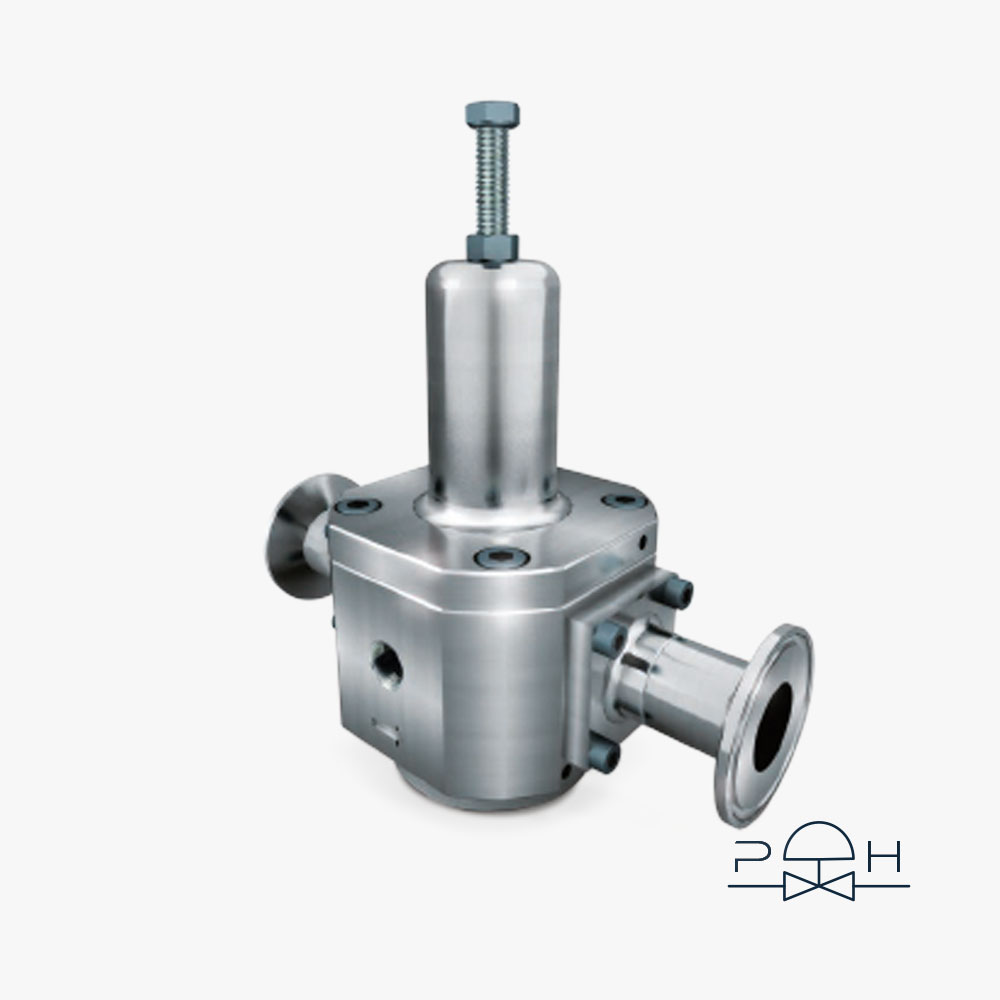 Pressure Regulators for LIQUIDS and GASES made of stainless steel 316 L, designed and manufactured for Pharmaceutical industries and Biotechnological applications. Control system with membrane convolved for best stability and precision. Balanced poppet-valve (shutter) to keep outlet pressure almost constant and independent from fluctuation of inlet pressure.
