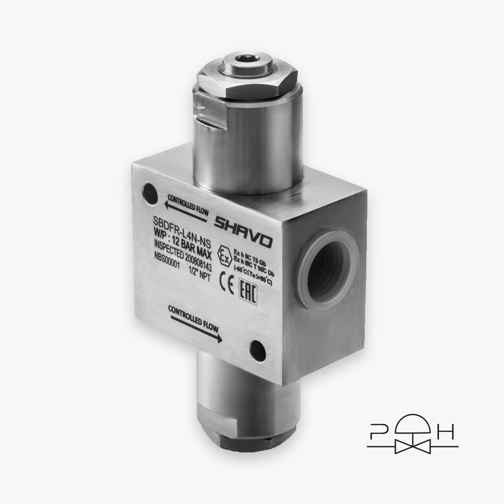• Bi-directional Flow regulator controls the flow separately in each directions.