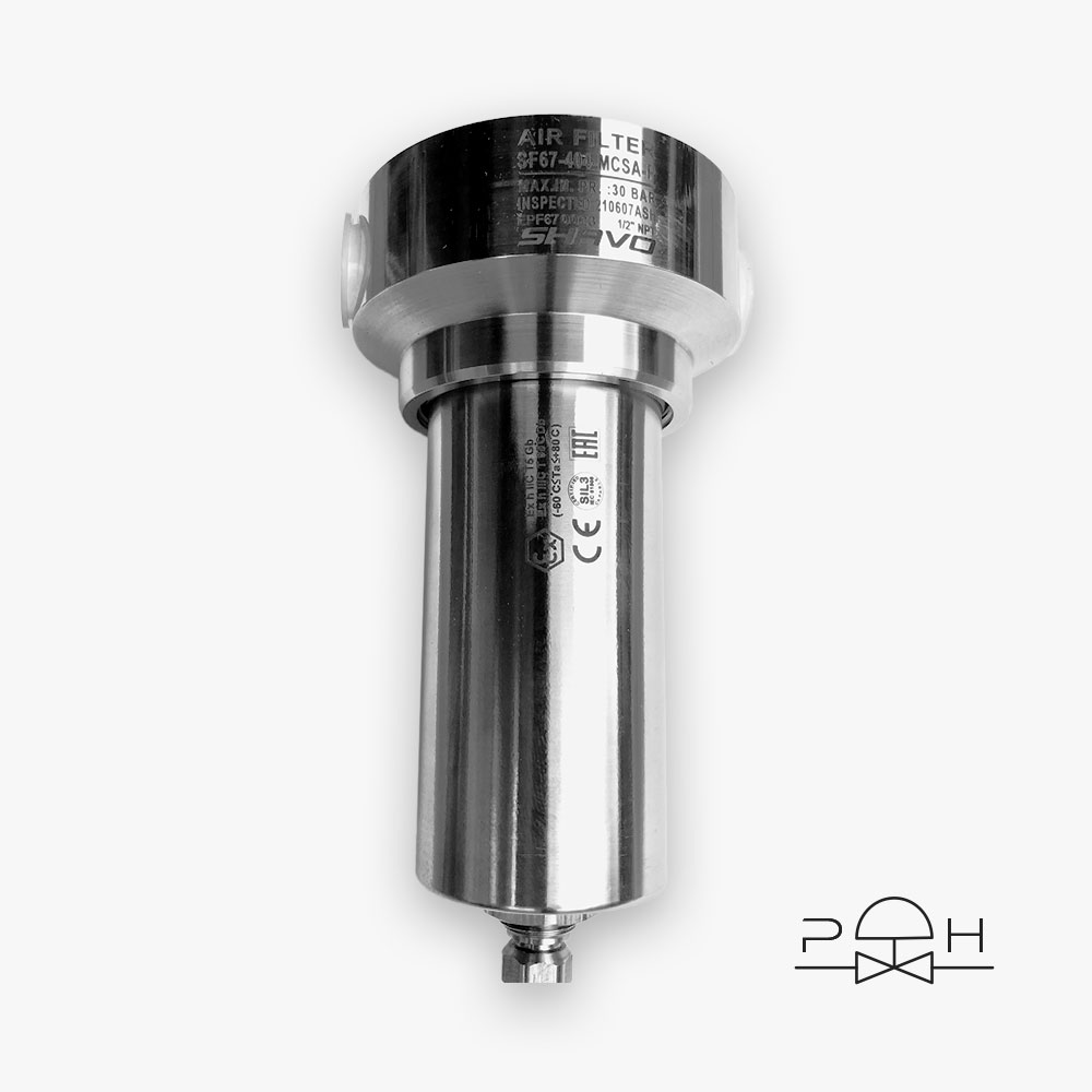 • Shavo’s Coalescing type oil removal Filter model SF67C is designed as a high-performance product for use in corrosive atmosphere.